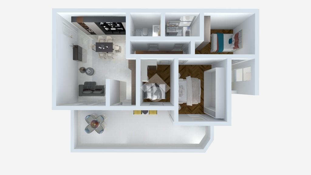 L'immobile è internamente composto dalla zona living con un ampio salone con cucina a vista, a seguire dal disimpegno abbiamo tre camere da letto e due comodi servizi.